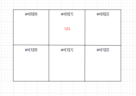 3. 만약 같은 예시( arr[0][1] = 123 )를 다차원배열로 생각한다면 아래와 같을 것이다.
