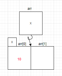 즉, arr[0]=10이라면 아래와 같은 위치에 10이 들어가게 된다.