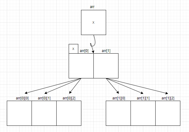 말하자면 arr[0]과 arr[1]이 각각 크기3의 배열을 가지는 것.