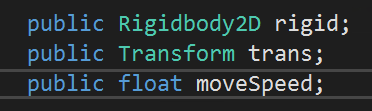 Unity Component의 정보를 C#Script에서 활용하고 싶다면, 변수를 선언할 때 접근제어자를 public 으로 선언해주자.